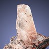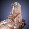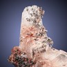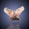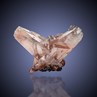 Excellent V-shaped Calcite twin from Leiping, Hunan Province, Chine. The twin crystals are to 4.2 cm tall, colorless with beautiful brick-red internal reflections from Hematite inclusions. Clusters of Calcite micro crystals are perched on some of the crystal faces. An incredible specimen, lustrous and pristine that can be displayed from every angle.