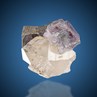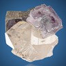 A translucent Quartz crystal is the host of a multicolored Fluorite group: Octahedrons to 1.7 cm on edge. Some of the cubes are selectively coated with sparkling brassy Pyrite micro crystals. The colors of the exposed Fluorite are interesting: light green in the core, violet zone surrounding the core, and blue edges. Maybe not the perfect undamaged specimen, but still very attractive!
