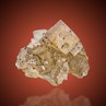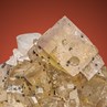 A miniature-sized specimen with honey-yellow Fluorite cubes from the Moroccan locality El Hammam. They are to almost 2 cm tall, with faint parquet textures on the crystal faces, and with a resinous luster. The cube faces are dotted with small doubly terminated Quartz crystals and spherical Pyrite clusters.