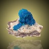 What can I say … this is a stunning cyan Cavansite aggregate measuring 1.6 cm in diameter. Numerous spherical sprays and crystal clusters are perched on small translucent Stilbite crystals. The matrix of this very aesthetic combination is the typical volcanic rock from the Indian trap basalts. A superb specimen with top contrast, aesthetics and balance.