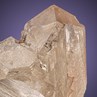 This is a very excellent, blocky, V-shaped Cerussite twin. It is gemmy translucent, colorless to light beige, with great internal reflections. The prism faces are striated and the terminations are smooth. A great 360° specimen, pristine, and top aesthetic!