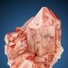 What an excellent Quartz var. Ferruginous Quartz specimen from the Orange River. Colorless-whitish crystals with deep rust-red mottled inclusions in a very aesthetic arrangement. The biggest of the crystals measures over 4 cm in length. A very dramatic specimen, full of aesthetics, and with a rather unusual coloring!