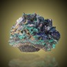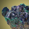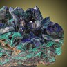 Dark blue Azurite crystals to 1 cm tall, partly transitioning to Malachite on a matrix with veinlets of Malachite. A great and colorful specimen from a mine hardly anyone has ever heard of. It is highly unlikely that you already have specimen from the Gold-Copper Sepon Mine in your collection. The Gold deposits of the mine were not discovered until 1998, Copper followed in 2003. And who has a Laotian specimen in his collection anyway?