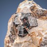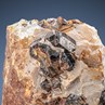 Just look at this classic Zinnwald (Cínovec) Cassiterite: black and brown crystals with a resinous luster up to 1 cm tall in/on typical matrix. The crystals show a great stubby tetragonal crystal form. Zinnwald is a historic mining district with records of mining activity going back to the Late Middle Ages. The greisen deposit that holds the ore is split across the borders between Saxony, Germany (Zinnwald) and Bohemia, Czech Republic (Cinovec).