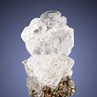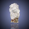 Water-clear Fluorite cuboctahedrons (8 triangular crystal faces and 6 square faces.) which measure up to 1.8 cm on edge. They are super gemmy with a vitreous luster, and perched like a lollipop on a small amount of brass yellow sparkling Pyrite crystals. A very typical appearance for the Mexican Gibraltar Mine that is probably better known for its "Cave of Swords" (Xochitl Cave).