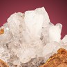 Clusters of whitish to colorless-translucent Hemimorphite crystals on typical Ojuela gossan matrix. The chisel-shaped crystals are up to 1.7 cm and associated with little Calcite. A very aesthetic Mexican specimen!