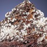 This specimen is literally covered with hundreds of porcelain white sprays of Hydrozincite on gossan matrix. The sprays up to 3 mm with a pearlescent luster consist of acicular crystals on gossan matrix. A very rich specimen!