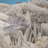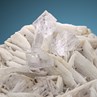 Very delicately violet Fluorite is perched on tabular white Barite blades up to 4 cm. The Fluorite is transparent with cubic habit as well as irregular crystal forms. These are up to 1.3 cm tall. You probably guessed it; a transparent mineral on white matrix looks much better in person!