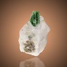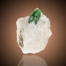 Here is another specimen from the Afghani Sar-e-Sang deposit: A bright green Pargasite aggregate of almost 2 cm on white marble. Pargasite, a member of the extensive Amphibole group is more of a rock-forming mineral than a collectors specimen. So it is exciting to look at this partly gemmy-translucent Pargasite with a great vitreous luster. Good color, great contrast and just beautiful!