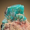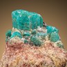 This is an exceptional miniature-sized specimen with emerald green, short prismatic Amazonite crystals up to 2 cm tall. The specimen is from the Ploskogorskoe deposit in the northwestern parts of Russia, which is the largest semi-precious Amazonite deposit in the world. A really great piece with exceptional color, contrast and aesthetics!
