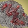 Well formed and blood-red crystals of Realgar on matrix from the major find in 2005 at historic Baia Sprie, more precisely at mine No. 5 (Put V). The crystals showing good luster and wonderful striation. A bit of noted bruising is certainly a modest detraction to this exceedingly attractive piece. NOTE: Realgar crystals are light sensitive and must be covered and protected.