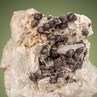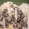 A rare locality piece with dark brown crystallized Siderite botroyds up to 0,7 cm in diameter. The contrast to the white Quartz is very good and such pieces are rare and desired by the local collectors.