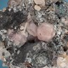 Several pale pink coloured and multifaced crystals of cobalt-bearing Smithsonite up to 0,9 cm from the famous Tsumeb Mine of Namibia. They have good luster and colour and they are accompanied by some unidentified species.