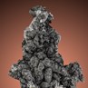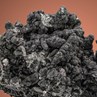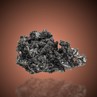 Botryoidal, velvety clusters of dark olive to black Mottramite accompanied by flattened, slightly disc-shaped tiny Calcite rhombs. Sculptural, typical and aesthetic material from the abandoned Namibian locale.