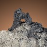 A dark gray aggregate of native Silver and Acanthite richly perched atop typically matrix. Nice material from the classic Norwegian locale.