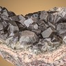 This fine piece is both,- very aestic and rare as well. The slightly elongated specimen host several sharp and multifaced Calcite crystals up to 1,7 cm. They are showing wonderful black colour and very good pearly luster. They are sharp edged as well and the specimen itself is exceedingly attractive.