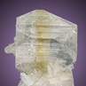 A superb single 2,8 cm Apophyllite crystal with incredible luster, accompanied by bladed Stilbite Jalgaon in Maharashtra, India. The multifaced Apophyllite is super gemmy, colourless with a yellow center and clear like water. A superb mini in splendend condition.