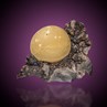 Extremely rare material and therefore almost never offered on the mineral market, these typically light yolk-yellow Calcite ball up to 3,6 cm in diameter on basalt matrix. The piece comes from the Malscheid basalt quarry near Herdorf in Siegerland, which was abandoned around 1950. Top material with excellent overall aesthetics. Minimal scratches on the surface do not detract the overall aesthetics.