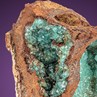 Two wide-open vugs are loaded with very exquisite, intense apple-green Cupradamite crystals up to 0,4 cm. These are extremely sharp-edged, highly shiny and gemmy. Back when I was active in the Lavrion mining area, which was now over 20 years ago, such pieces were already relatively rare and sought after