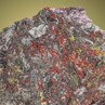 Wakabayashilite is an EXTREMELY RARE As-Sb sulfide and this specimen is richly covered with quince yellow microcrystals. These are accompanied by the also rare As-Sb sulfide Getchellite. This one presents itself in somewhat indistinct metallic red crystals. Usually such pieces are chopped up by mineral dealers to make more profit, but not this time. HIGHLY RARE