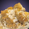 A combo of tightly intergrown crystals of Calcite and Cerussite as so-called Plumbocalcite up to 1,9 cm from the classic Austrian deposit Bleiberg (today Bad Bleiberg) in Carinthia. On closer inspection you can clearly see the scalenohedral basic shape, which is partially doubly terminated. The entire surface is covered with tiny, glistening Hemimorphite crystals.