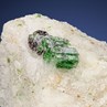 Pargasite is an uncommon member of the Amphibole group, and an unusually colorful one, at that. This Pargasite is superb in every way, much sharper than normally seen. The 1.5 x 1.2 cm cluster, reasonably large for the species, has sharp, lustrous faces with attractive striations, it is gemmy to translucent, and has intense green color. Highly representative of the uncommon, very colorful species and locality.