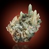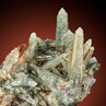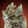 A beautiful specimen with slender olive green Prase crystals 2.7 cm long on fibrous Hedenbergite matrix. This matrix, or the Hedenbergite inclusions in the Quartz crystals, give the Prase its olive green color - very similar to the material from the Greek island of Serifos. All major crystals here have largely intact tips and the specimen is aesthetically pleasing, especially since Elba Prase is naturally rarer than its other European "brothers"