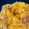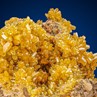 A very aesthetic and showy Bunker Hill Pyromorphite of lustrous, wet-look, golden-canary yellow prisms nicely set almost over the whole display face. This very three-dimensional Pyromorphite specimen is a rolling matrix with 4mm crystals that emerge dramatically and spread slightly to the sides to create a multi-faceted glitter on the display surface when viewed from the side from all angles. It is almost flawless. What is unusual for this growth is that the tips have an excellent, glassy shine and the stems also have a shine. It was mined here in its heyday in the 1980s, in contrast to “Round 2” in the mid-1990s, as can be seen by its intense yellow color and sparkling shine.