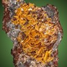 A striking old-time specimen with countless intense yolk yellow bladed Wulfenite crystals up to 0.6 cm on edge. The Wulfies are nicely perched on a matrix that is partly gossan and partly consisting of Galena. Classic material from the venerable Stefanie Mine near Bleiberg in Carinthia, which was defunct in the late 1980s