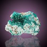 Countless emerald green Dioptase crystals up to 4 mm in size, lining a vug in Chrysocolla coated Quartz matrix. The Dioptase crystals here are extremely sharp-edged, highly lustrous and gemmy. Very good and colorful material from the great finds at the end of the 1990s.