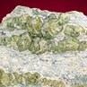 A fine and classic, rich specimen of gemmy and lustrous, olive-green Andradite variety Demantoid garnets aesthetically and also richly scattered and clustered on starkly contrasting fibrous serpentinite matrix from an old time Italian locality - the Val Malenco of Sondrio Provine in Lombardy. The crystals here are sharp edged, the luster is great as mentioned before and they are perfectly trerminated as well. A super piece in splendid condition with no imperfection so far I can see. The backside is sawn.