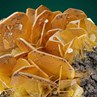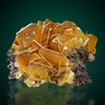 Here we are looking on a superb and highly aesthetic specimen with excellent developed, sharp and bladed crystals of Wulfenite. This is an important display-quality small cabinet piece for the classic locality, featuring dramatic aesthetics compared to the jumbly mess these usually present as. Superbly emplaced on matrix are six-sided, well terminated, tabular, lustrous and translucent, orangey-yellow wulfenite crystals, to 2,7 cm across. A part of the crystals are showing a brownish hue. The crystals are largely dominant and perfect, which is remarkable The luster is high, the geometry is outstanding... it is hard to find a better one in such a size range. This was likely collected in the 1960s. A superb Wulfenite specimen, suitable for highest aesthetic standards for the species, considering the quality for the locale. --- IMPORTANT: HAND DELIVERY IS MANDATORY --- Ex Dr. Hans-Jürgen Wilke Collection.