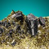 This is an unusual good specimen of so-called "Cleft-Augite" from the alpine locality Seebachkar of Obersulbachtal in Pinzgau, Austria. The Augite crystals here are superbly defined and mirror bright with nice terminations. They are aesthetically associated with olive green and glassy, elongated Epidote crystals. Actually a common combination piece, but not in this quality and crystal size of the Augite (the major crystal measures 1,8 cm in lenght). A stunning and rather uncommon alpine item with only minor imperfection.