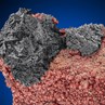 This is an exceptional Hausmannite specimen with several jet-black, partially intergrown octahedral crystals of the manganese oxide. The crystals measure to 1.7 cm on edge. They are sharp and have a beautiful metallic luster. The typical triangular structure are intergrown octahedrons of countless smaller crystals; somewhat reminiscent of a Christmas tree. The Hasumannite crystals are perched on a bed of brick-red Andradite crystals with a nice vitreous luster. Material of this quality was recovered from the N´Chwaning II Mine in the 1980s and 1990s has now become rare. Come and get this excellent specimen from that period.