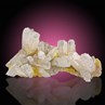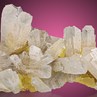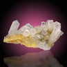 We are looking at a very attractive Celestine-on-Sulfur specimen from the classic Italian deposits at Agrigento in Sicily. Similar in looks to the English "Kanonenspat” (canon spar) Calcites", numerous, similarly shaped prismatic, highly lustrous individuals of Celestine up to 2.5 cm tall are perched in a very contrasting way on lemon-yellow Sulfur crystals. As far as I can tell with the unaided eye, all of the highly lustrous and well-terminated crystals are in perfect condition—definitely a feast for the eyes. And it gets better when you shine ultraviolet light on this specimen. Towards the end of the 19th century, around 75% of the world’s sulfur was produced in Sicily. Poor peasants provided cheap labor—including child labor— inhumane working conditions, and the monopoly position made the owners of the Sulfur mine rich. Ignoring their anti-social behavior and blinded by the huge profits, they did not make any investments for the future. This attitude took bitter revenge with the invention of the Frasch process in the US (a method to extract sulfur from underground deposits by taking advantage of the low melting point of sulfur) and the development of the Sulfur huge deposits in Louisiana and Texas. As early as 1914, Italy´s share of the Sulfur world production had fallen to 14%; in 1965 there were still 180 and in 1983 there were still 13 mines. Today there is no longer any sulfur mining in Sicily. So cherish these classic Italian specimens for as long as you can.