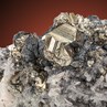 This fine and old-time specimen hosts brassy, multifaced Pyrite crystals up to 1,5 cm. They are accompanied by slightly indistinct crystallized, dark gray Chalcocite. Both species are nicely and contrastfully set on a matrix of white, crystallized Quartz. Well-crystallized Pyrite from Tsumeb is rare and this one is excellent and aesthetic as well. Despite the Pyrite is not perfect, this anyway a great locality piece.