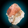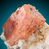 Here we see a well-formed, textbook-shaped, doubly terminated, salmon-orange Serandite crystal on a Feldspar-Natrolite matrix, 2.2 cm large, as a colorful miniature sized specimen from Mont Saint-Hilaire in Canada. This sharp, blocky Serandite is locally translucent along two major faces and features beautiful luster along these faces; the other crystal faces display a satin-like luster. This would have been found in the the late 1980s and beautiful pieces like this one are still history and hard to get on the mineral market meanwhile,- especailly for a reasonable price, like this specimen.