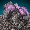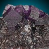 Glowing crystals of deep lilac, cubed Fluorite nicely perched atop a rich mass of beautifully crystallized Sphalerite, the zinc ore that was the focus of the Elmwood mine for decades before it closed a few years ago. The Fluorites measure up to 1.5 cm on edge, has very good luster and that typical quadrangular pattern along the faces. You can see how the deep coffee-brown Sphalerite has formed large, highly lustrous euhedrals, on whose surface are hundreds of small, complex subcrystals. Highly aesthetic material at an absolutely fair price, in my opinion.