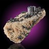 This incredibly PERFECT Rutile comes from the famous Puster Valley in South Tyrol, Italy. Specifically, from the Pfunderstal valley in the Vintl area. This 0.8 cm crystal features numerous epitaxial terminations, is pristine all around, and boasts with breathtaking brilliance. It is relatively centrally perched on contrasting, glittering Feldspar matrix and is nicely associated with smaller "cousins". A top-notch mini. A find from 1960. Ex Bernhard Dünkel collection.