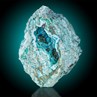 Here we see another piece of this wonderful material, a strikingly colorful specimen showing another 5 cm measuring vug nicely filled with velvety sky blue Planchites, but associated with some light green velvety Malachite. Plancheite, a rare copper silicate is rarely found in good specimens and here we see densely intergrown, 1.3 cm measuring Planchite puffballs in this ultrafine piece. Scattered throughout these puffballs are smaller spherical clusters of dark green primary Malachite, providing great contrast, aesthetics and dramatics. The radial pattern of crystal development is clearly visible along the rim of the specimen. Extremely large, rich and aesthetic for this locality.